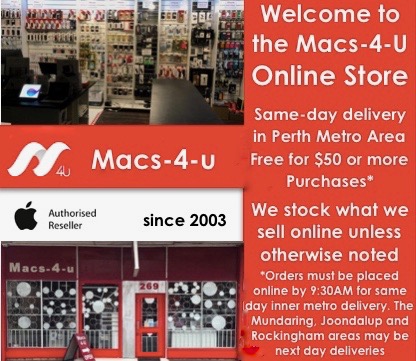 We sell a wide selection of Apple products and accessories, shipping locally from our store in Midland, Western Australia.